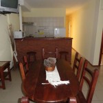 Este cuenta con un dormitorio principal sumamente amplio, el dormitorio secundario cuenta con dos camas individuales, ambos con vista al parque y la piscina Baño completo . Hermoso living comedor con  balcón y esplendida vista al mar con cocina abierta con barra desayunadora. Posee un diván cama individual y su correspondiente carrito (con muy buenos colchones), en el mismo se encuentra el TV color de 20”.
